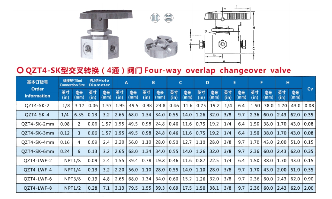 交叉转换(4通)阀门